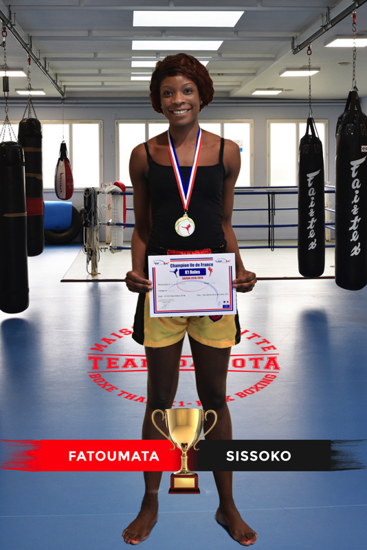Fatoumata SISSOKO, Championne IDF K1 Rules (Senior B, - 65kg), 1&2 dec 2018, Championne IDF Thaï 26 janvier 2019 et championne de France Thaï - 3 mars 2019.