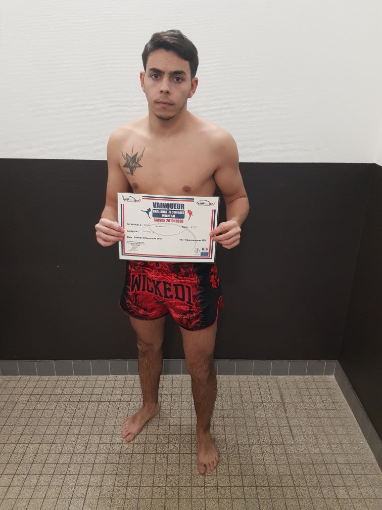 Nassim CHENNOUFI vainqueurs par KO au challenge 5 combats du 16 novembre 2019 à COUROURONNES